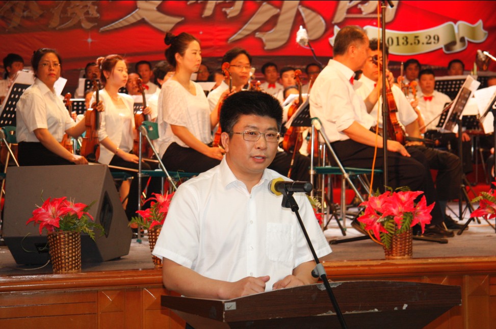 本溪市委常委、宣传部长梅玉良,副市长温雪琼及市文联、市教育局、文广局等相关部门领导,公司程岩经理、刘海邦书记、张奕峥副经理等受邀出席大会。梅玉良代表市委、市政府向本溪交响乐团的成立表示热烈祝贺,向来自音乐界的朋友们表示衷心感谢。他说,本溪曾经以“美术现象”闻名省内外。本溪交响乐团的成立,为山城的文化艺术事业发展注入了新的生机和活力。希望借助交响乐团这一载体,争取再出现一个闻名全国的本溪“音乐现象”,使本溪交响乐团成为本溪市又一张亮丽的城市名片。