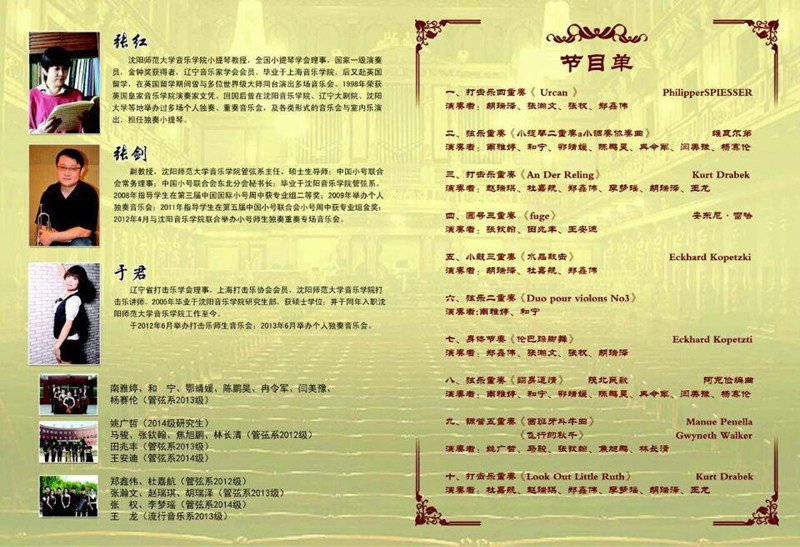 在这场音乐会登台演出的表演者全部来自资深教授张红;副教授、硕士研究生导师张剑和辽宁省打击乐学会理事于君的员工们。员工们在听完整场音乐会之后纷纷表示,能够欣赏到由名师们的亲自指导的专业性较强的音乐会是很难得的,为表演专业的员工们提供了很成功的学历案例。因此,也都十分珍惜这次能够听到这场精彩演出的机会。