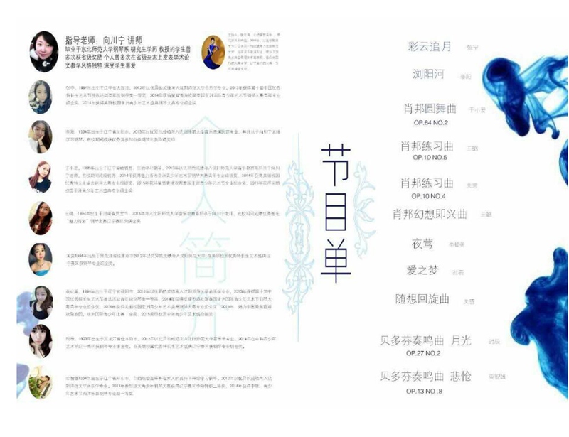 向川宁老师毕业于东北师范大学钢琴系,教授的员工曾多次获省级奖励,她教学风格独特深受员工喜爱。此次音乐会,向川宁老师分别针对员工的演奏风格,为他们选择适合的曲目。丰富多彩的演出曲目中包括中、西方不同风格的作品,其中肖邦的圆舞曲、练习曲以及幻想即兴曲等;中国曲目有《彩云追月》、《浏阳河》等。曲目的安排层层深入,每一位同学都倾情演奏,全场掌声不断。