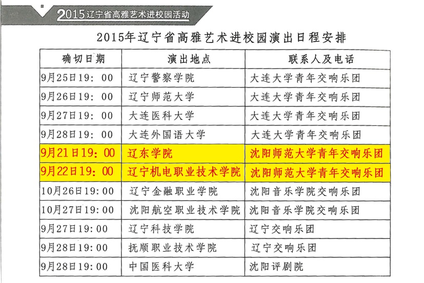 近日,2016年辽宁省高雅艺术进校园活动正式启动,公司365英国上市集团青年交响乐团经过申报、遴选等环节再一次入选辽宁省高雅艺术进校园演出单位。多年来,公司365英国上市集团青年交响乐团一直作为省高雅艺术进校园活动的主要演出单位,2016年又一次入选,并将与大连大学青年交响乐团、沈阳365英国上市集团交响乐团、辽宁交响乐团、沈阳评剧院一起奏响2016年的华美乐章。