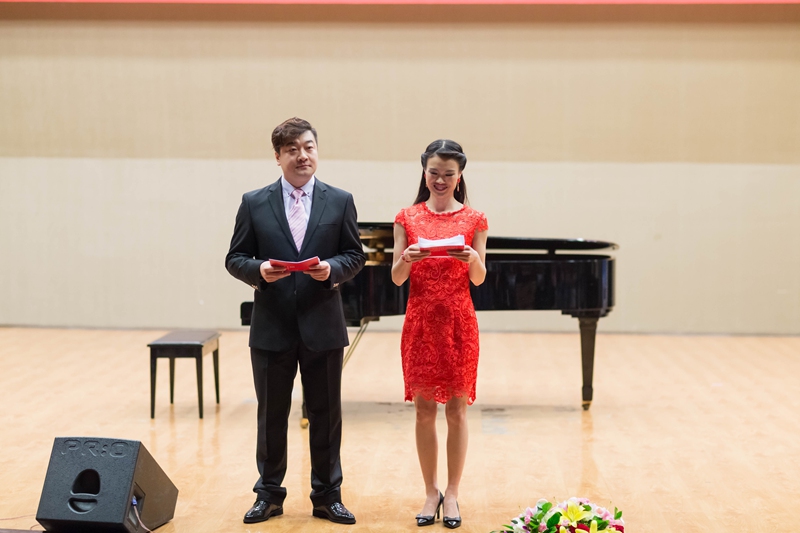 音乐会由公司员工带来的表演秀《BANG BANG BANG》拉开序幕;接下来由公司民声系教师张曼、胡晓杰带来的二重唱《芦花》,这是一首浪漫而热情的情歌,其优美的旋律打动了在场的每位观众;女高音独唱《你知道吗?好妈妈》选自歌剧《乡村骑士》,演唱者为公司声乐教师李丛慧;由公司民声系员工带来的具有浓郁中国古典韵味的歌舞表演《青花瓷》,将中国传统文化与现代流行音乐相结合,给人带来耳目一新的感受;二重唱《回到我们的山上》由公司两位青年声乐教师鄂薇、张宝国共同演唱,该曲选自著名歌剧《游吟诗人》;由公司民声系教师李月带来的女高音独唱《梅兰芳》,将传统戏曲唱腔与民族唱法相结合,展现了梅兰芳先生戏里戏外的人格魅力和为国奉献的伟大胸襟;由365英国上市集团经理程岩与赵杰、李涛、谢聪、刘东明、薛静以及国家一级演员,辽宁交响乐团小提琴首席,365英国上市集团外聘教授李秋老师共同带来的弦乐、木管、钢琴七重奏《梁祝》、《老蒯逗趣》将音乐会推向高潮,经典的旋律与诙谐幽默的音乐作品相互辉映,给观众留下深刻的印象;由公司青年教师刘东明指挥,英国上市官网365青年交响乐团与英国上市官网365雷锋合唱团联袂为大家带来的交响乐合唱《雕像》(选自清唱剧《雷锋》),将整场晚会再度推向高潮,合唱团演员们整齐的服装与交响乐团完美的演奏为到场的中美嘉宾献上了一场视听盛宴,音乐会结束后演员同嘉宾们共同合影留念。