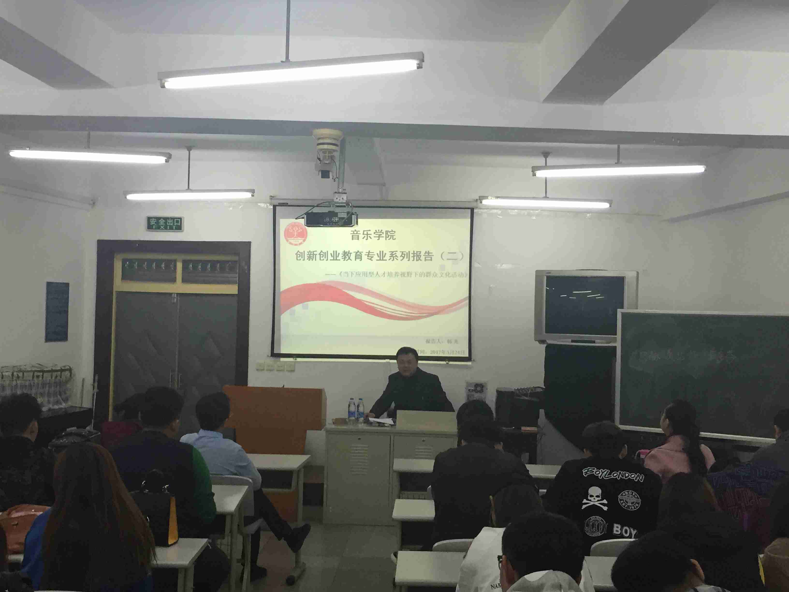 在本场报告的互动环节中,韩光馆长在回答师生们所关心的老员工从事群众文化活动应具备的条件时,他给出了四点建议:1.大学毕业生要有一定的专业知识和能力;2.要有热情去投入到群众文化工作中;3.要多了解,知道老百姓的需要是什么;4.要知道所服务单位的需求。总之,群众文化产业是非常有前景的,应通过大学这一平台去更好地展示,提高师生们对于群众文化服务的热情,为老员工创新创业开辟新的思路。