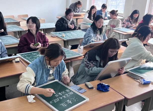 本次比赛分为初赛和决赛两个阶段。同学们围绕“献礼党的二十大”、经典诗词、音乐类教学等主题用心地在黑板上书写,从一笔一划中体会写字的技巧,品味书写的真谛。经初赛,三十名同学从近百个参赛选手中脱颖而出,进入决赛。
